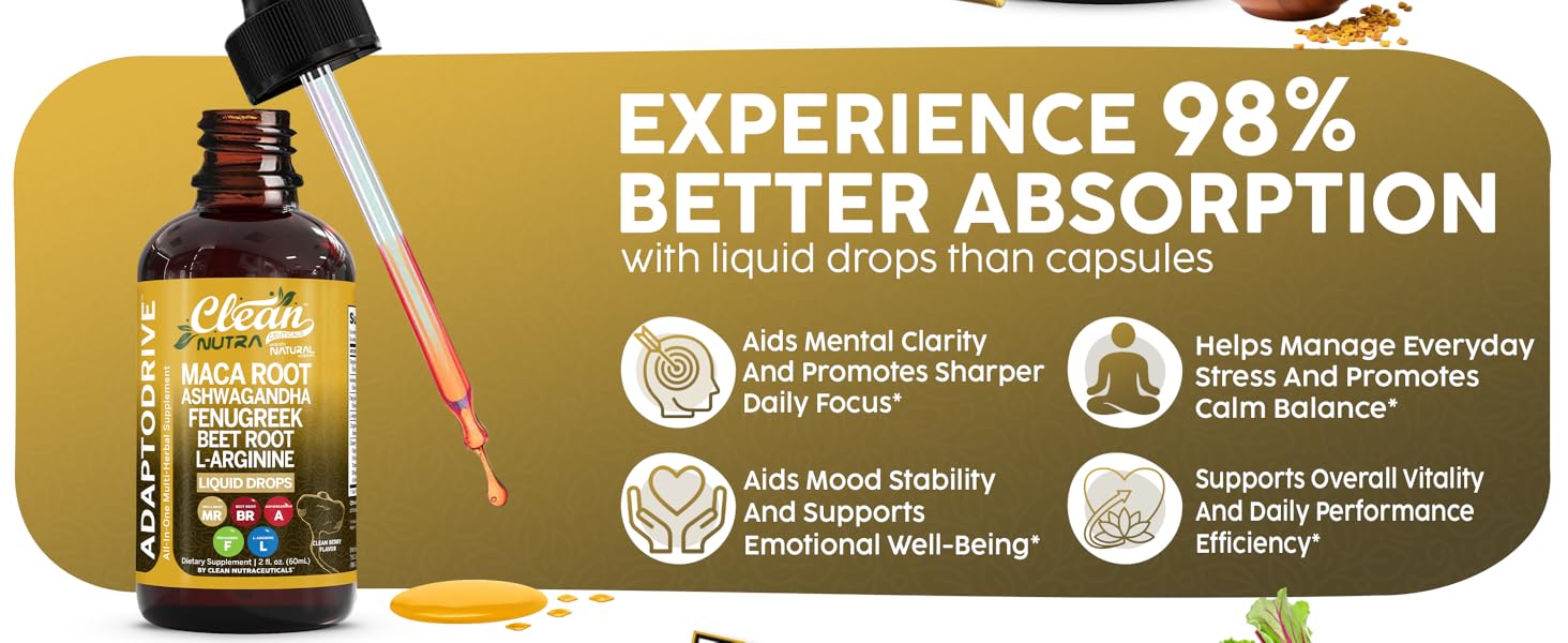 These drops support energy, endurance, mood, and natural hormonal balance using high-potency Peruvian maca. Many users feel more focused, stable, and energized throughout the day.
